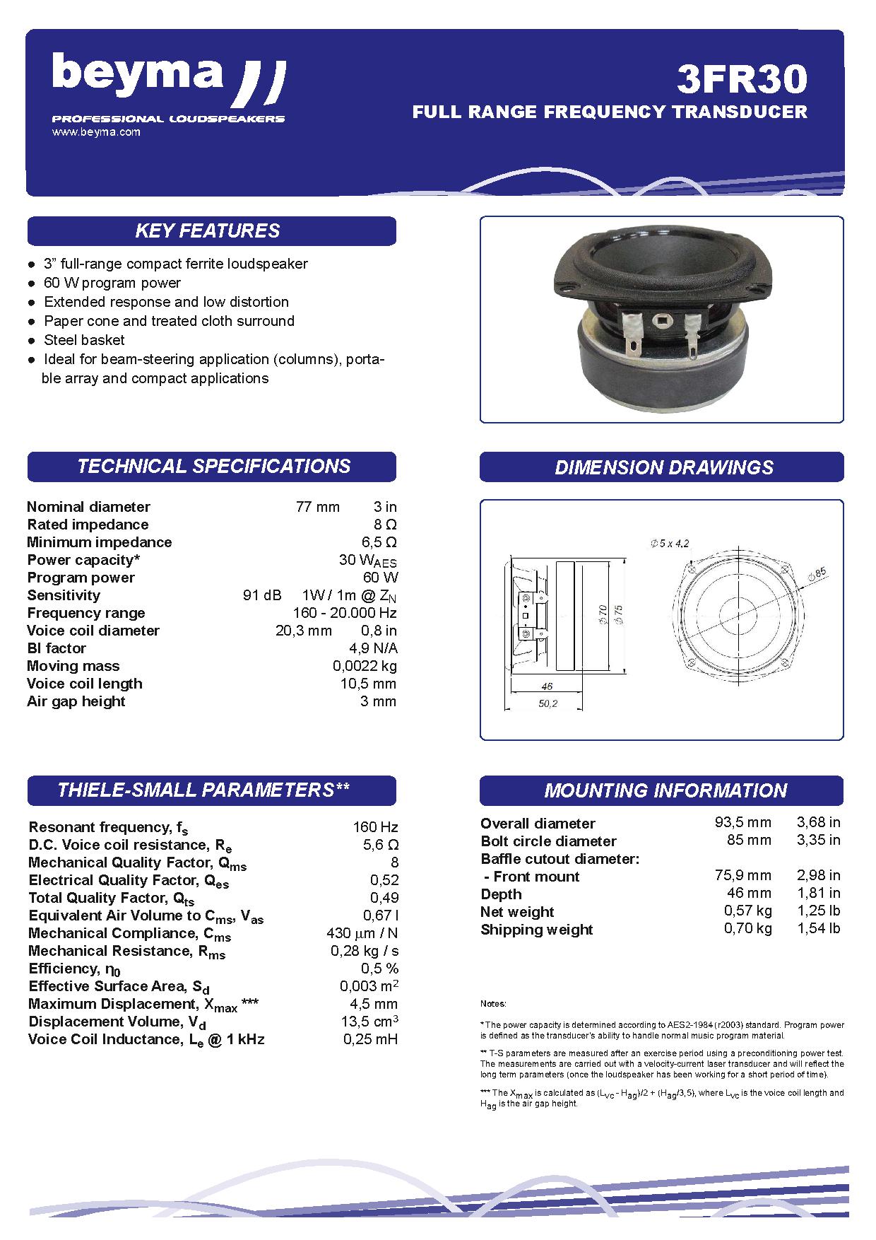 Діаметр звукової котушки: 20,3 мм